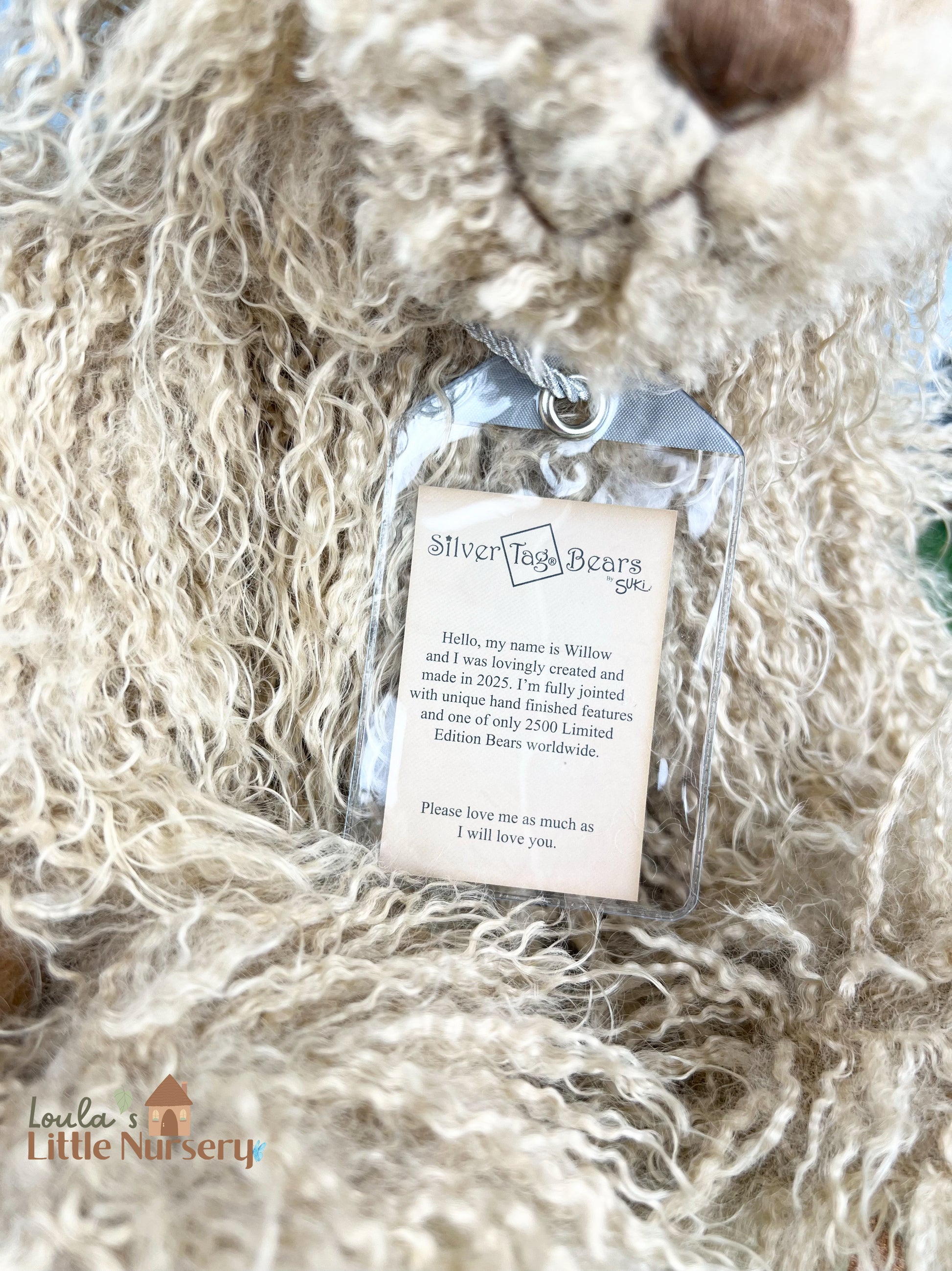 Our limited edition Willow bear from Collection 9 of our Silver Tag® Bears.