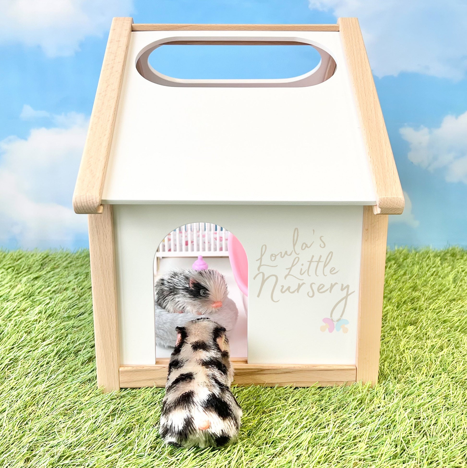 Welcome to the perfect home for your silicone animal friends! This gorgeous high quality and sturdy wooden house features charming details and plenty of space for one or more of your favourite creatures. Crafted with care, it's ideal for imaginative play and makes a delightful display piece. Create endless adventures as your silicone pals settle into their new cosy abode. A timeless addition to any collection.